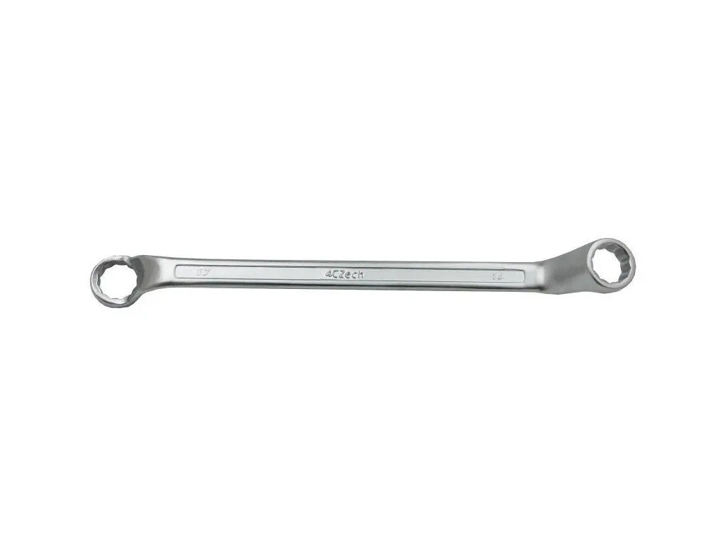 Kľúč očkový vyhnutý DIN 838 vykovaný z jedného kusu kvalitnej chrómvanádiovej ocele.Povrchová úprava: chrómovaný leštený povrch.Očká vyhnuté o 70° umožňujú povoľovanie/uťahovanie zapustených skrutiek/matíc.12 hranné očká s profilom zaisťujúcim maximálnu styčnú plochu prenosu sily na matice pre predĺženie životnosti kľúča.